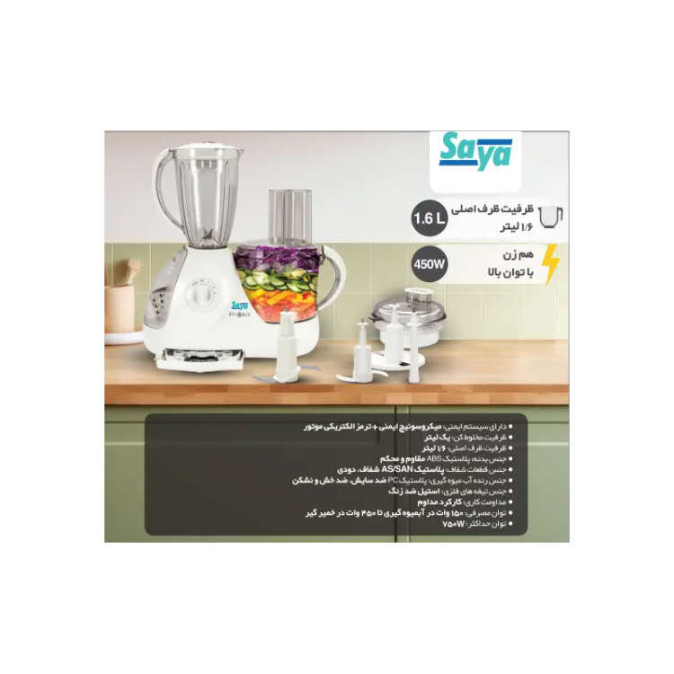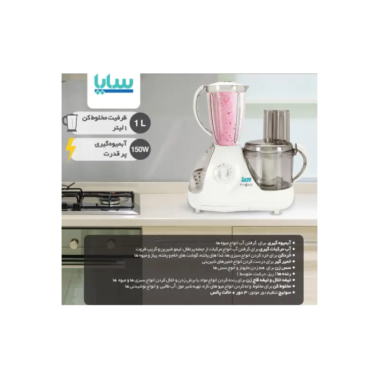 غذاساز سایا مدل PROKIT ظرفیت ۱.۵ لیتر ۳ سرعته